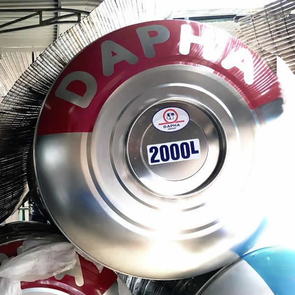 Thương hiệu được sơn trên thân bồn inox 2000l Dapha 2000 lít ngang