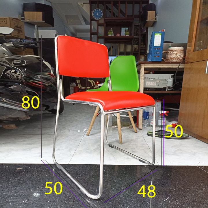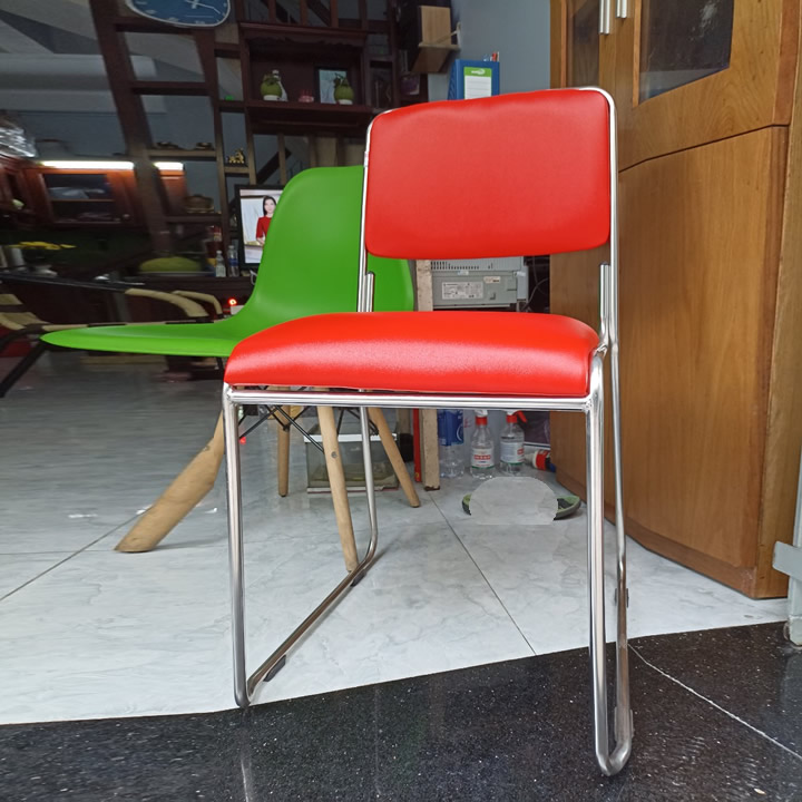 Loại ghế dựa inox xếp mặt simili GCD24 có kiểu dáng phù hợp với nơi học tập, trường học, hội hợp, khu thảo luận, nhà hàng, quán ăn, gia đình,…