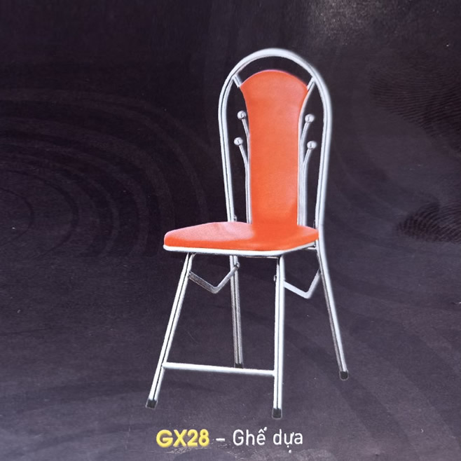Loại ghế dựa inox xếp mặt simili GX28 có kiểu dáng phù hợp với nơi học tập, trường học, hội hợp, khu thảo luận, nhà hàng, quán ăn, gia đình,…