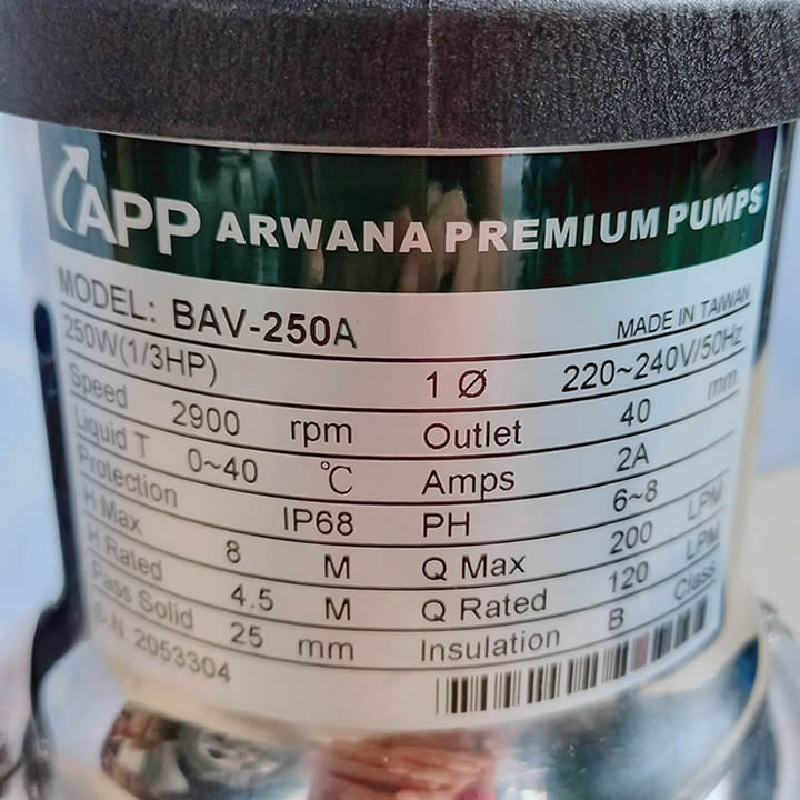 Thông số kỷ thuật máy bơm chìm APP BAV 250A
