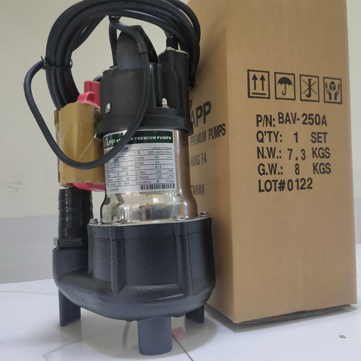 Máy bơm APP BAV-250A 250w BAS 300A BAS300A 250w (1/3Hp) có phao tự ngắt nhập khẩu từ Đài Loan