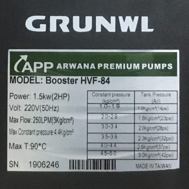 Thông số kỷ thuật máy bơm tăng áp biến tần APP HVF84 2Hp