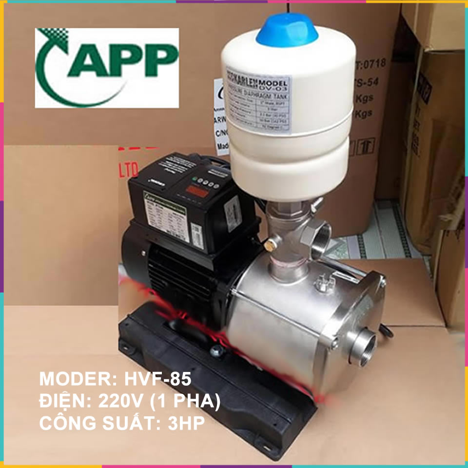 Máy nước bơm APP HVF-85 (3HP-220V) biến tần HVF85 HVF 85 (2200w) điện 1 pha đầu bơm inox cánh inox áp cao giá rẻ