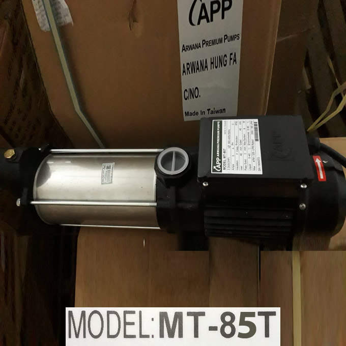 Máy bơm nước đa tầng cánh áp cao APP MT-85T MT85T 3HP (2200w) điện 380V 3 pha chuyên đẩy cao giá rẻ