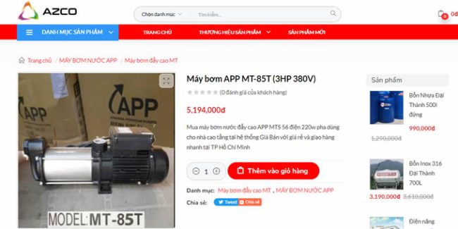 – Thanh toán tiền ngay tại công trình khi nhận máy bơm APP MT-85T (3HP 380V)