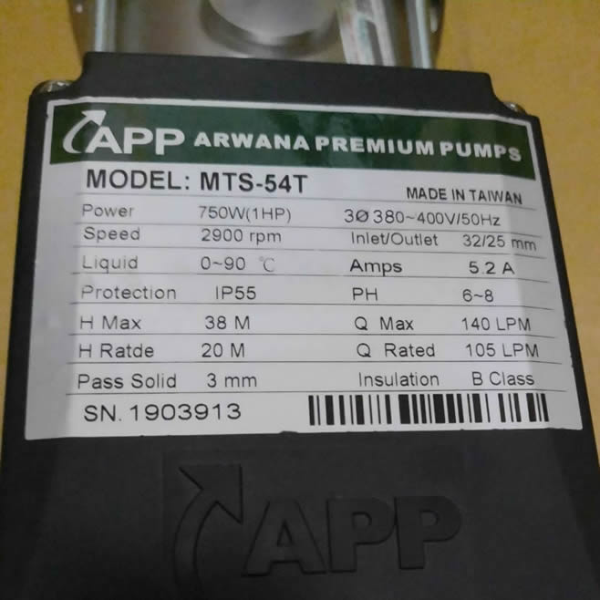 Máy bơm APP MTS-54T (1HP 380v) là bơm nước đẩy cao đa tầng cánh 3 ngựa 3 pha giá rẻ