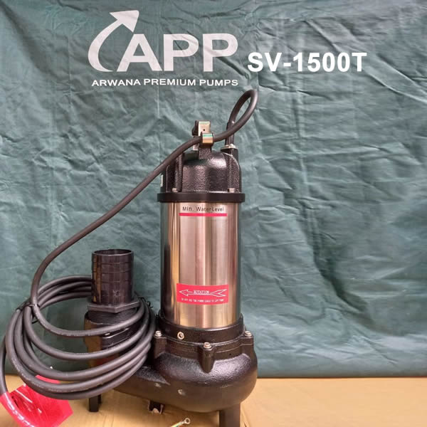 Máy bơm nước thải APP SV-1500 (1 pha) và SV-1500T (3 pha) có công suất 1,5Hp thả chìm nhập khẩy từ Taiwan