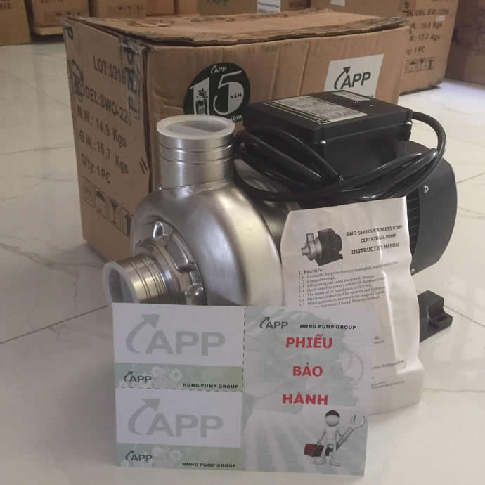 – Mỗi sản phẩm máy bơm APP SWO-1201 1.5hp 220v đều có kèm theo phiếu bảo hành.
