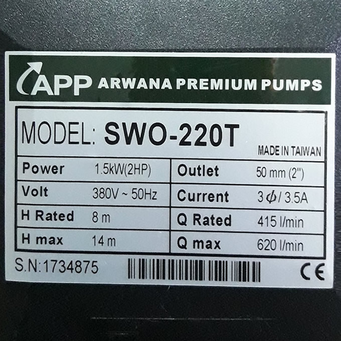 Máy bơm nước APP SWO 220T 2HP (1.5Kw) điện 380v (3 pha) dòng lưu lượng giá rẻ được nhập khẩu từ Đại Loan.