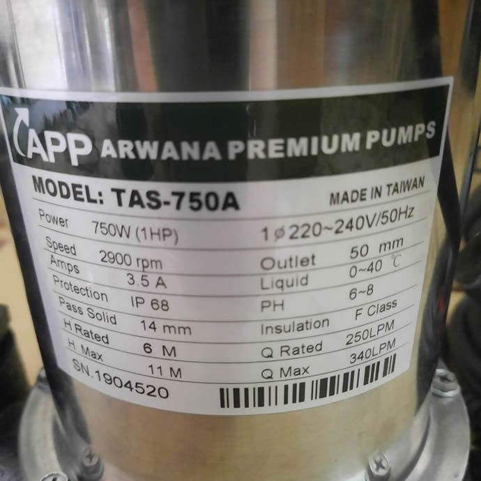 Thông số kỷ thuật máy bơm thải chìm 750w APP TAS 750A