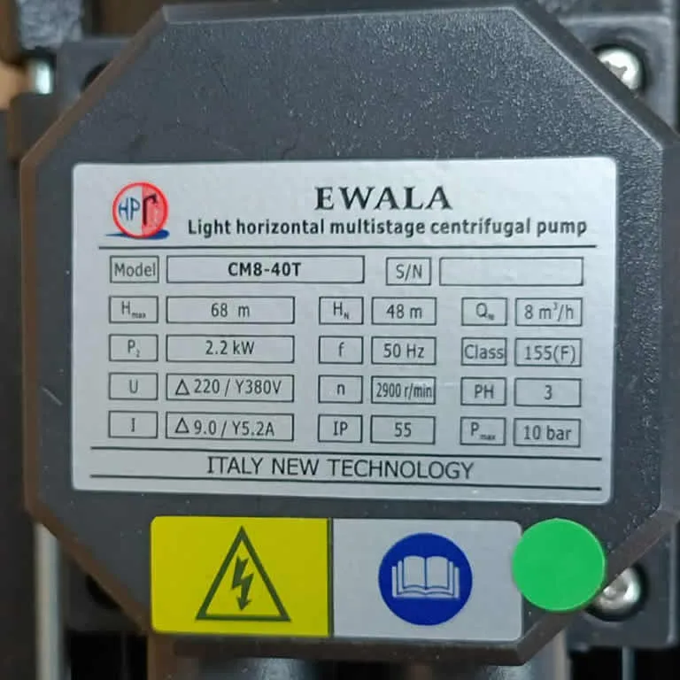 Máy Bơm Ewala CM8-40T (3Hp 380v), bơm nước trục ngang đa tầng cánh 2.2Kw điện 3 pha, đầu cánh bằng inox.