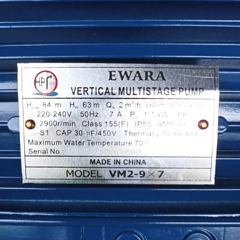 Thông số kỷ thuật máy Bơm nước Ewala VM2-9×7 1.1Kw