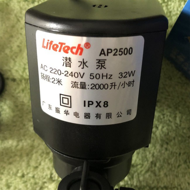 – Máy bơm thả chìm Lifetech AP2500 chuyên thổi oxy cho hồ cá cảnh lớn, hồ cá Koi.