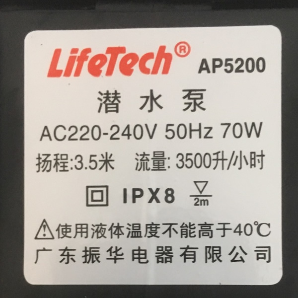 Thông số kỷ thuật máy bơm hồ cá Lifetech AP5200