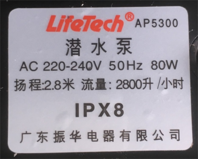 Thông số kỷ thuật máy bơm hồ cá Lifetech AP5300