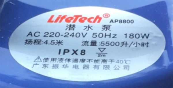 Thông số kỷ thuật máy bơm hồ cá Lifetech AP8800