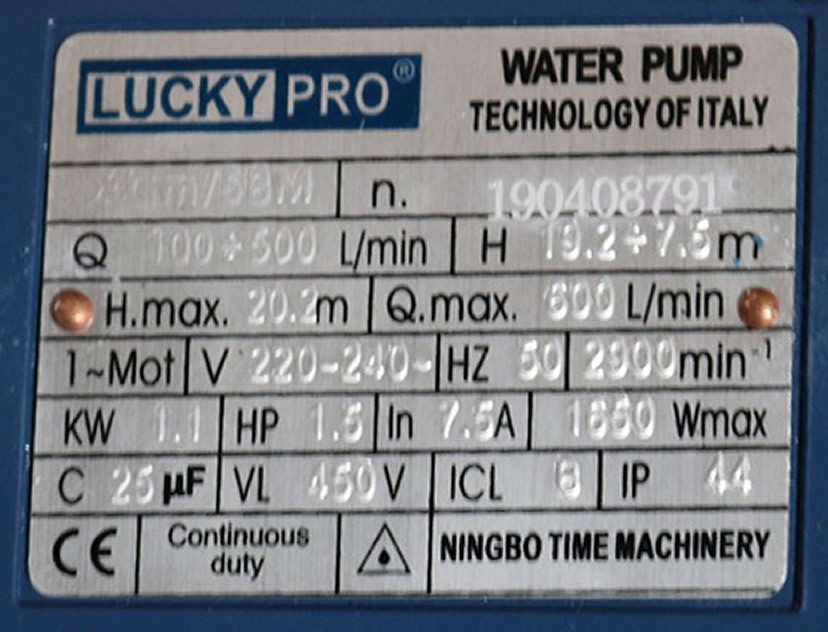 Thông số kỹ thuật máy bơm 1.5HP Lucky Pro