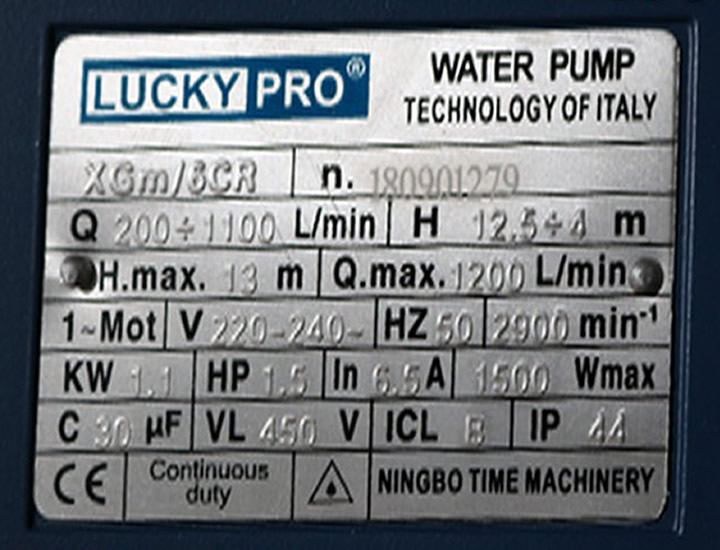 Thông số kỹ thuật máy bơm 1.5HP Lucky Pro XGm/6CR
