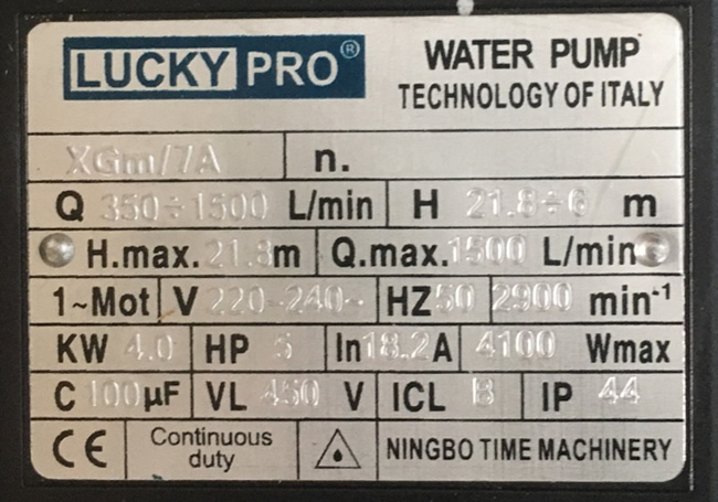 Thông số kỹ thuật máy bơm 5HP Lucky Pro XGM/7A.