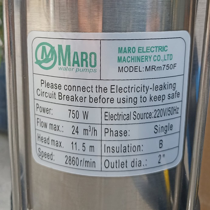 – Máy bơm chìm nước thải Maro MRm750F 1HP được trang bị một pha với bộ ngưng tụ và bộ bảo vệ quá tải nhiệt được tích hợp vào cuộn dây.