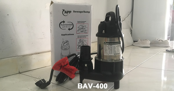 Máy bơm nước APP BAV-400 BAV 400 BAV400 400w (1/2Hp) dòng bơm thả thải chìm được nhập khẩu từ Đài Loan