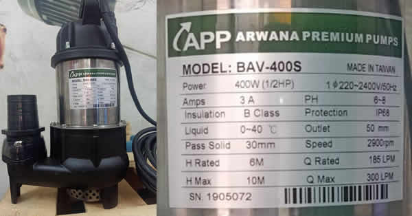 Máy bơm nước App BAV-400s BAV400s BAV 400s 400w (1/2Hp) dòng bơm nước thải thả chìm nhập khẩu