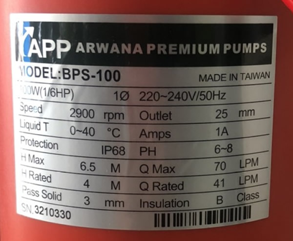 Máy bơm nước App BPS-100 BPS100 100w dòng bơm thải thả chìm trong nước được nhập khẩu từ Đài Loan