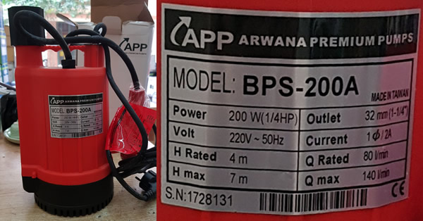 Máy bơm nước thải APP BPS-200A BPS200A 200w có phao loại thả chìm trong nước được nhập khẩu từi Đài Loan giá rẻ.
