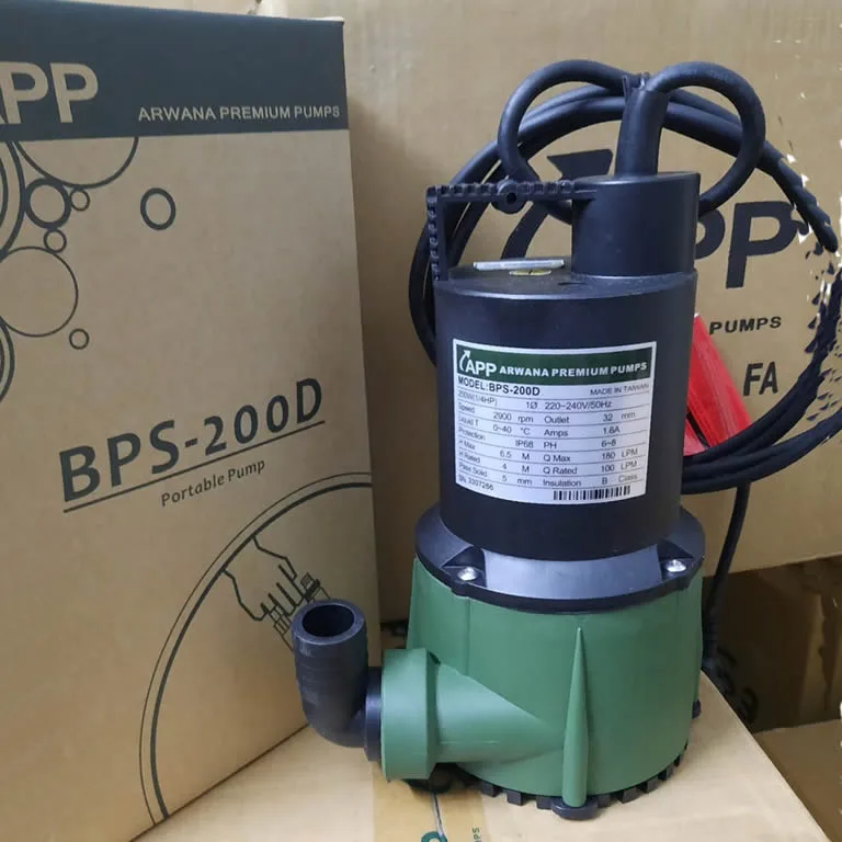 Máy bơm nước APP BPS-200D (200w) BPS200 1/4Hp là dòng bơm thải thả chìm hút nước cạn đến 3mm.