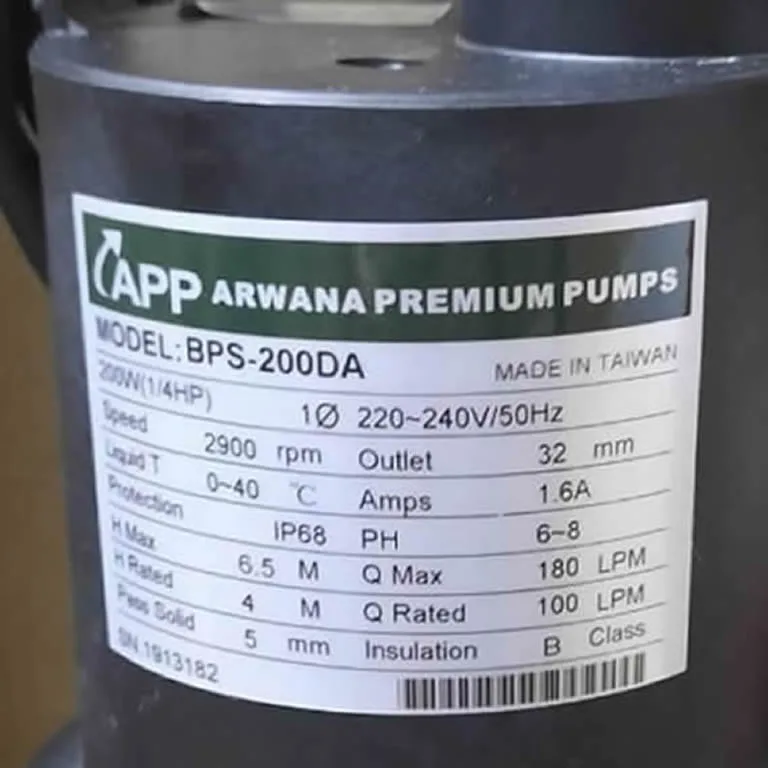 Máy bơm nước APP BPS-200DA (200w) BPS300 1/4Hp là dòng bơm thải thả chìm hút nước cạn đến 3mm.