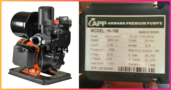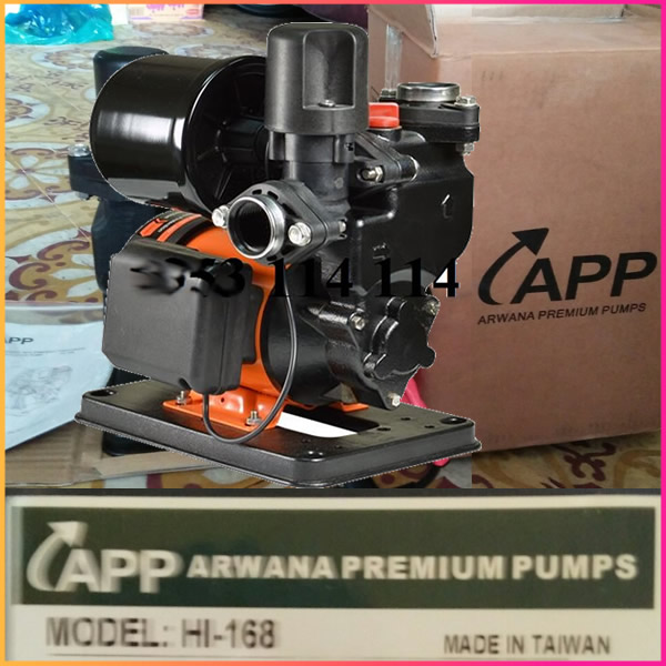 Máy bơm nước APP HI-168 HI 168 HI68 là loại máy tăng áp lực tự động có công suất 200w được nhập khầu từ Đài Loan.