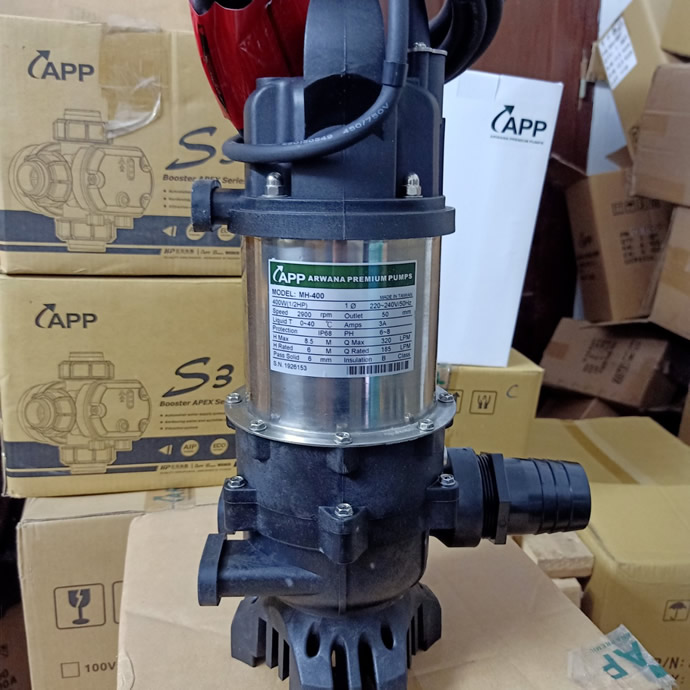 Máy bơm nước APP MH-400 400w 1/2Hp điện 220w, 1 pha, là dòng bơm nước thải chuyên làm đài phu nước cho công viên.