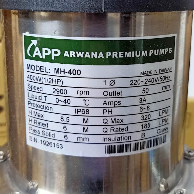 Thông số kỷ thuật máy bơm phun nước công viên 1/2hp APP MH 400