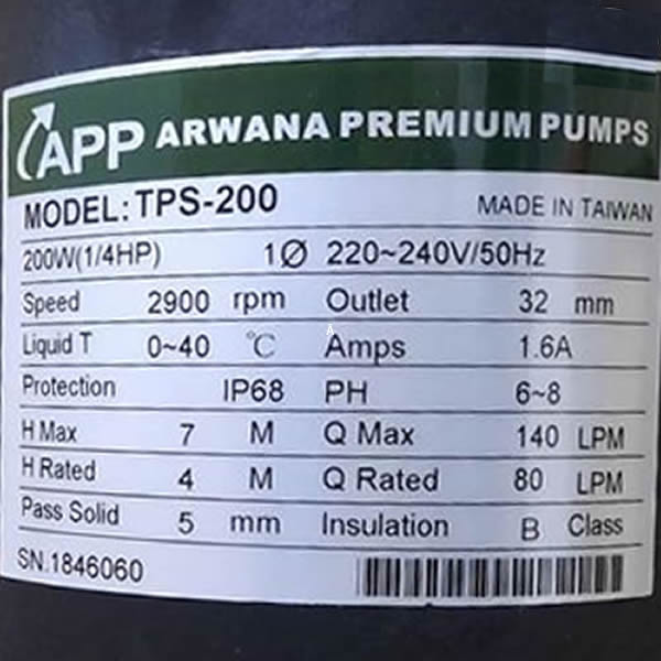 – Máy bơm nước APP TPS-200 có độ hút sâu dưới nước là 1m.
