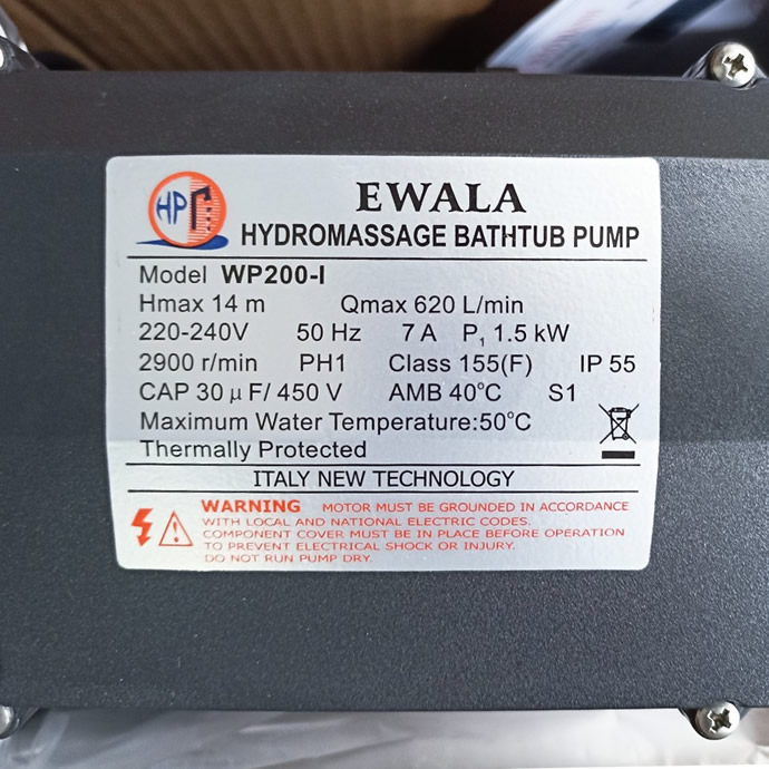 Thông số kỷ thuật máy bơm Spa 2Hp Ewara