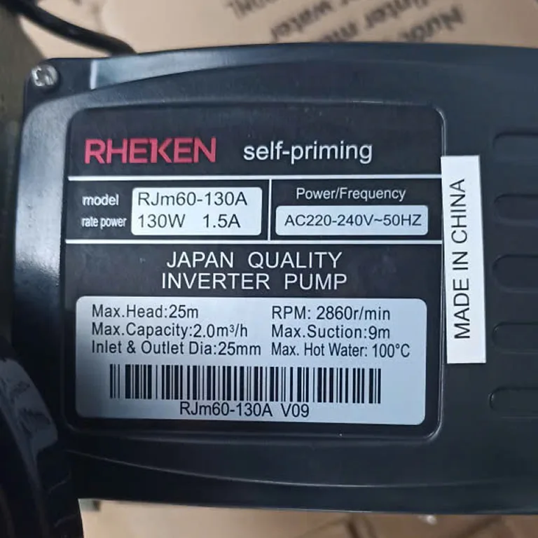 Máy bơm RHEKEN RJm60-130A (130w) là dòng bơm tăng áp lực nước tự động bằng điện tử không gây ra tiến tạch tạch