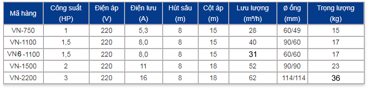 – Máy bơm Vina Pump VN-1100 (1.5Hp) với cánh bằng hợp kim