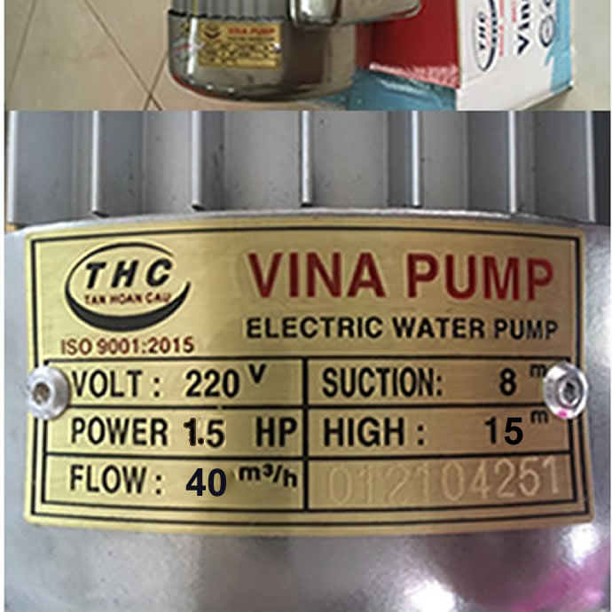 Máy bơm Tân Hoàn Cầu 1.5HP (90-60) với dòng sản phẩm máy bơm nước Vina Pump VN-1100 1100w họng hút 90 xả 60