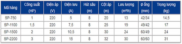 – Máy bơm Super Win SP-750 (1Hp) với cánh bằng hợp kim