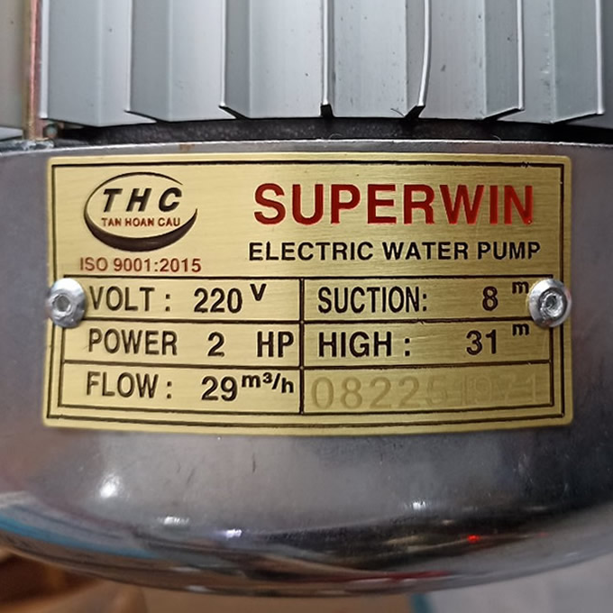 Máy bơm Tân Hoàn Cầu 2HP họng (60-49) với motor nước Super Win SP-1500 2 ngựa