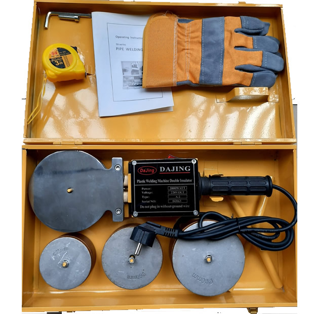– Dụng cụ đi kèm máy và các thông số kỹ thuật: Máy hàn ống nước nóng phi 90 110