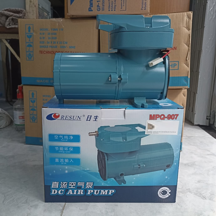 – Máy thổi khí Resun MPQ-907 12v 130w là dòng bơm oxy sử dụng điện bình ắc quy 1 chiều