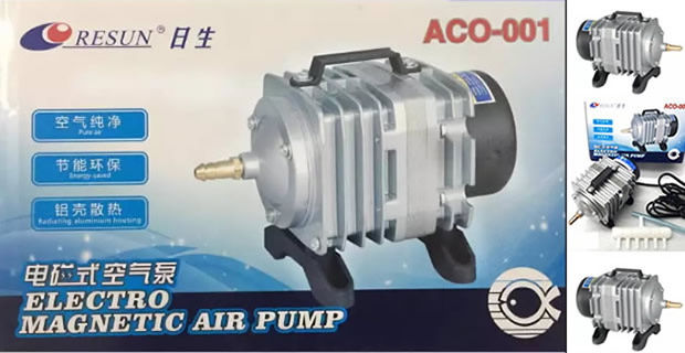 – Máy Bơm Oxy Resun ACO019 (620w), cung cấp khí cho hồ cá, tôm, cua và các vật nuôi thủy sản.