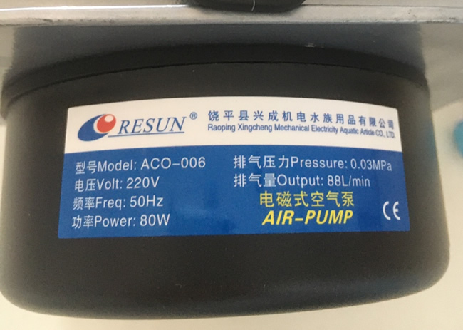 – Máy thổi oxy Resun ACO 006 (80w) là dỏng máy bơm con sò với hãng sản xuất nổi tiếng của China Trung Quốc với kinh nghiệm lâu năm trong sản xuất các loại máy thổi khí Resun ACO008 có công suất lớn, độ bền cao, hoạt động êm ái, ổn định, bền bỉ và tiết kiệm điện.
