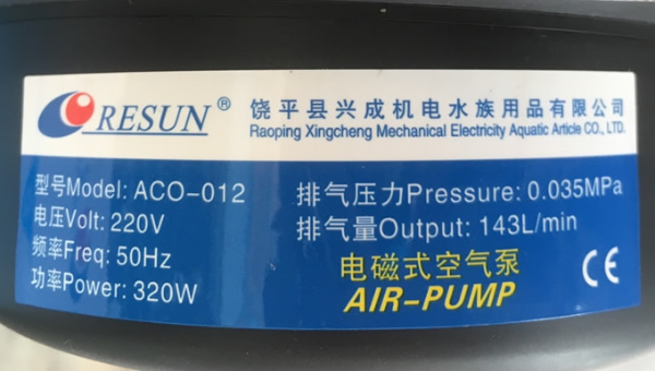 – Resun có danh tiếng khá tốt trong lĩnh vực máy thổi/sủi khí thủy sản; được nhập chính hãng.