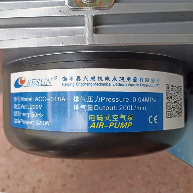 – Máy Bơm Oxy Resun ACO018A (520w), Cung cấp oxy hòa tan cho hồ cá, ao nuôi tôm cá.