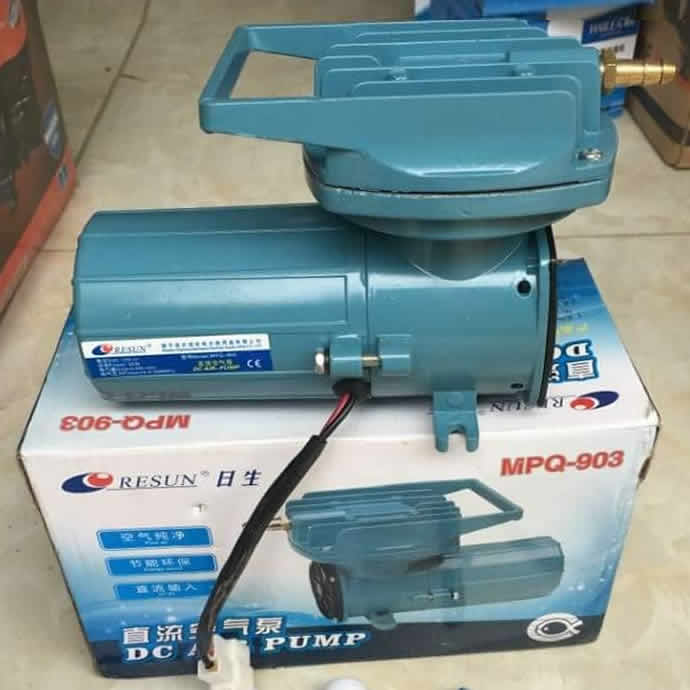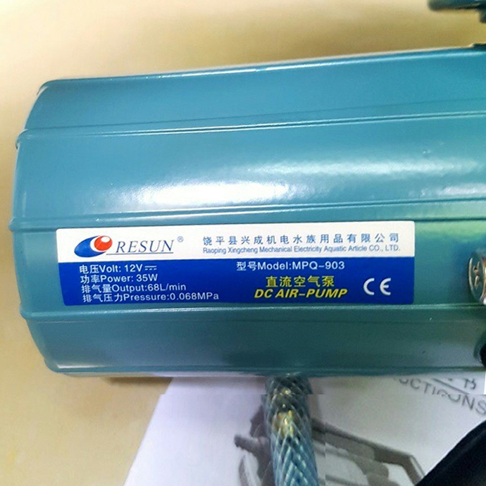 – Máy thổi oxy Resun MPQ-903 35w là dòng bơm oxy sử dụng điện bình ắc quy 1 chiều
