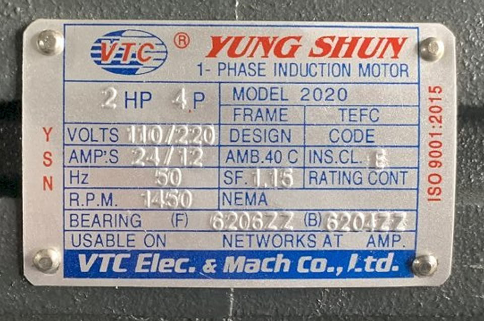 Motor VTC 2HP 220v tua 1450 vòng/phút 1.5Kw điện 1 pha của công ty Vĩnh Thuận Cơ