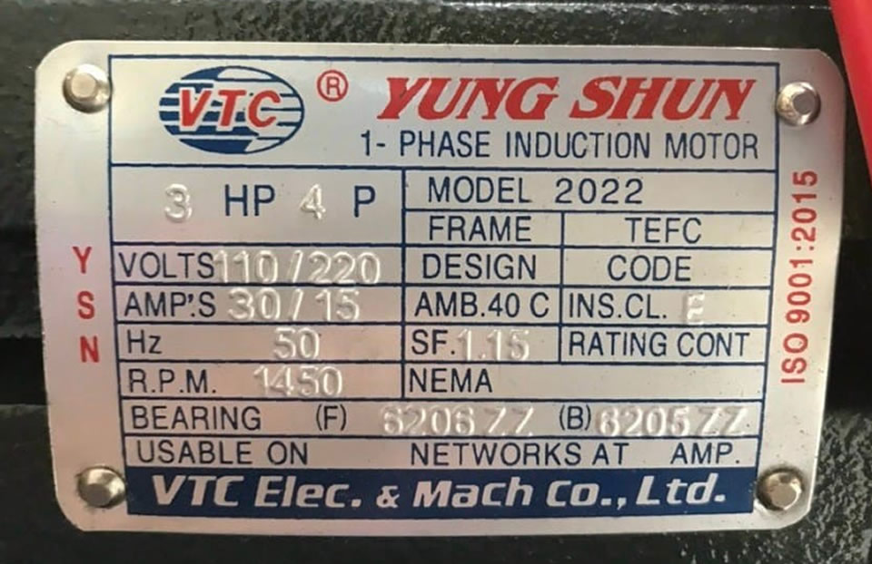 Trọng lượng Motor VTC 3Hp 1 pha (tua 1450) : 45kg