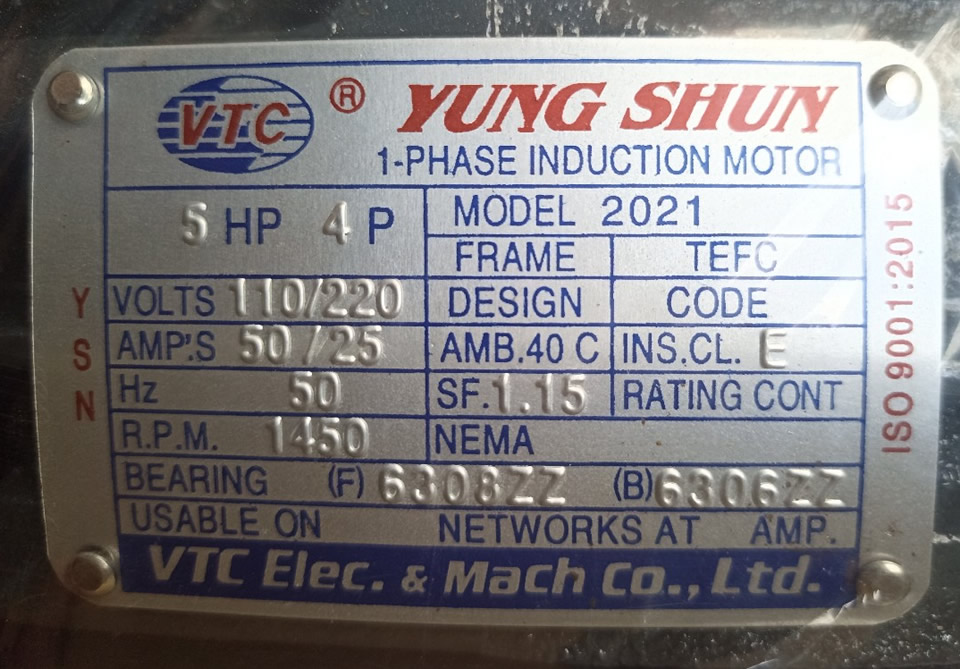 Motor VTC 5HP 220v tua 1450 có số cực 4P